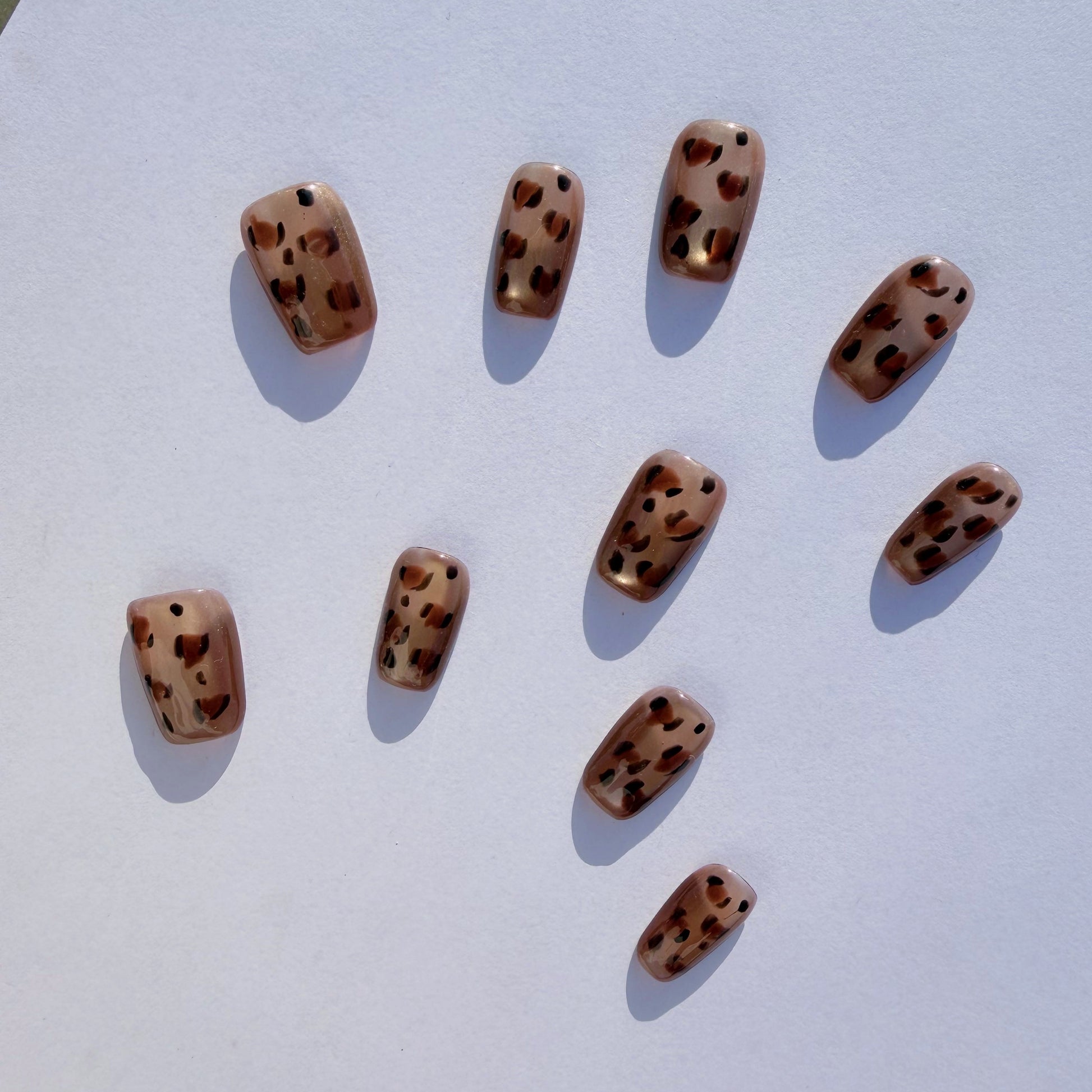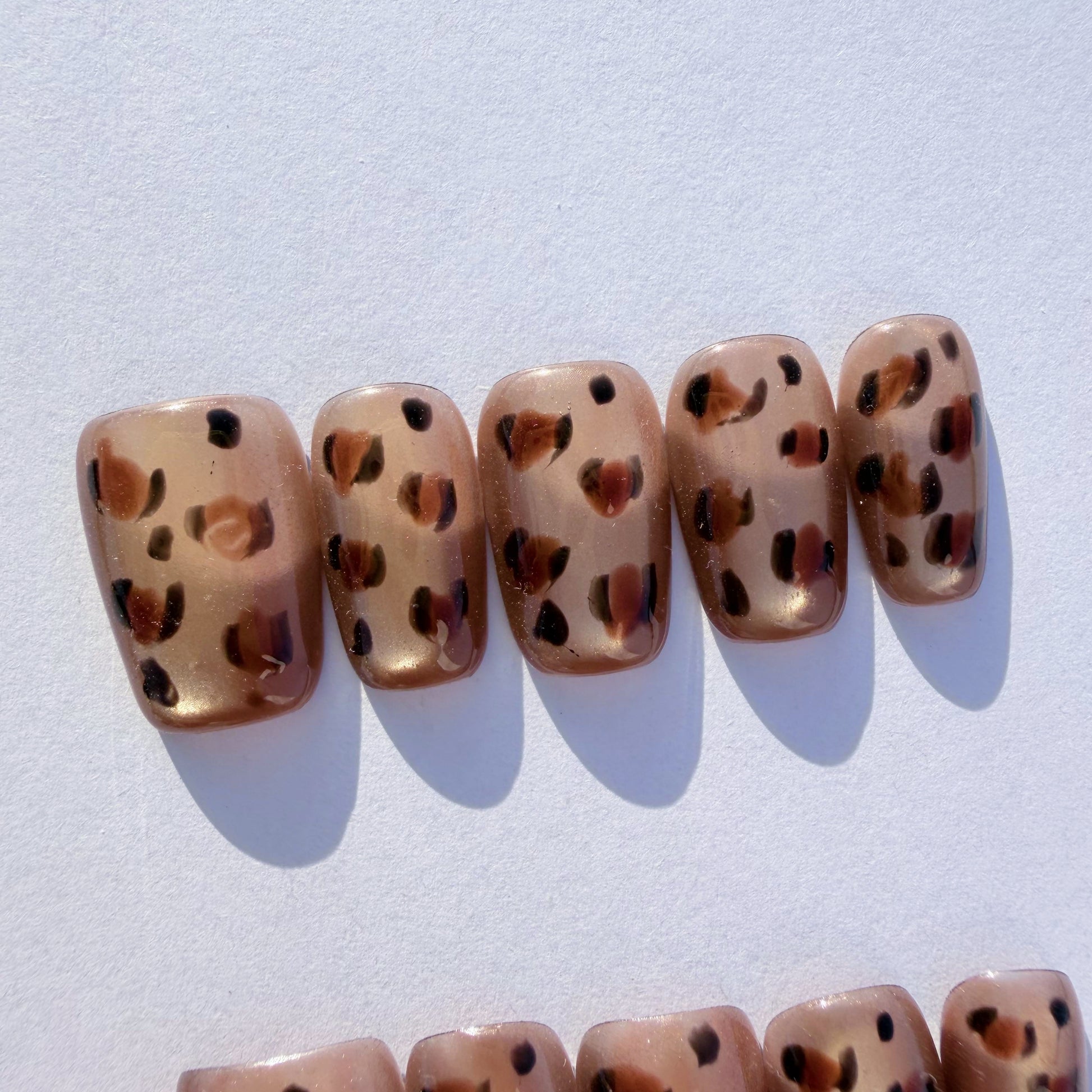 Luxury Press-On Nails | Golden Glitter Leopard Print | Reusable, Short Square Shape
