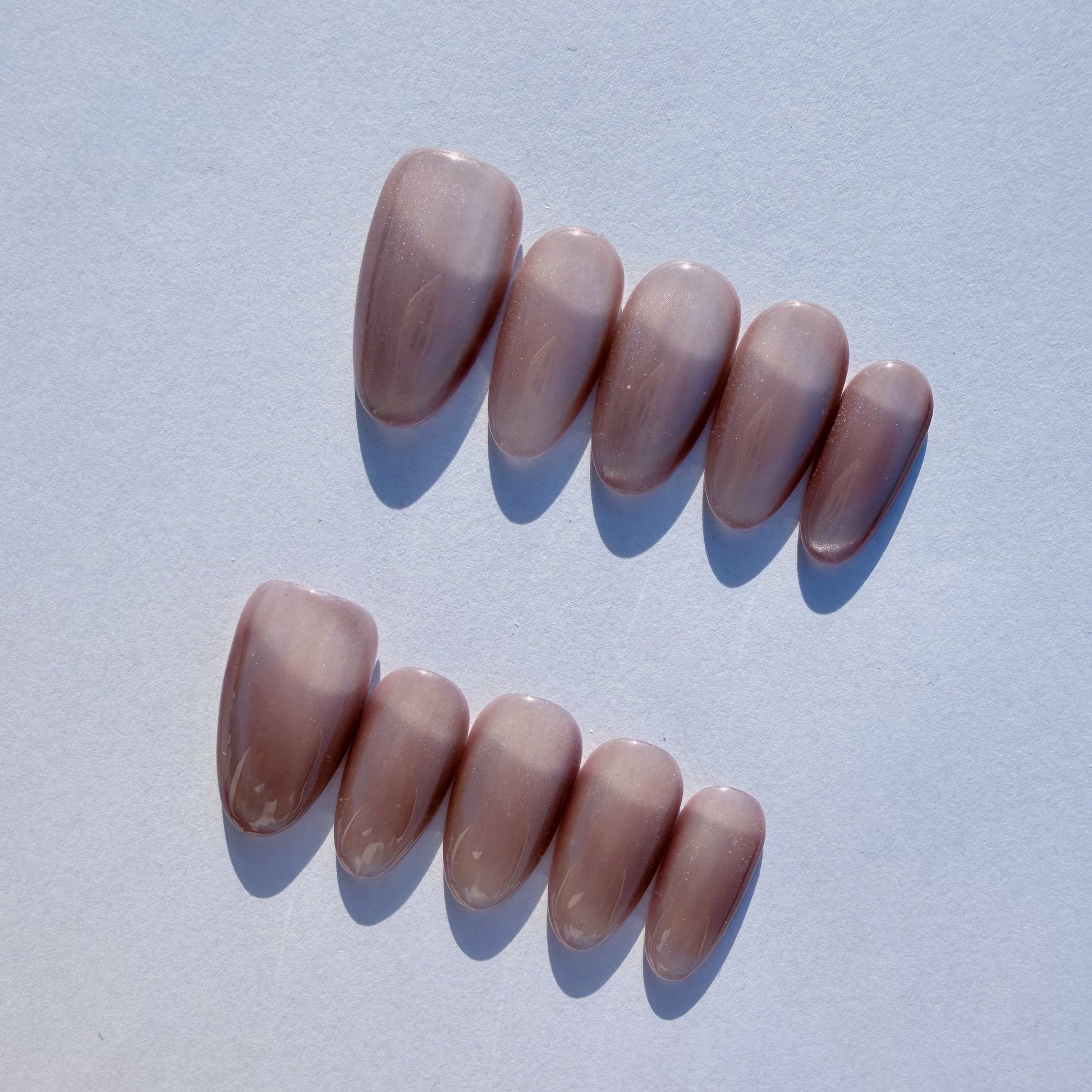 Experience the captivating depth of the "Blushing Quartz" Press-On Nail Set. These reusable, short almond-shaped nails are the ultimate choice for the modern woman who values quiet luxury, natural sophistication, and a romantic aesthetic.